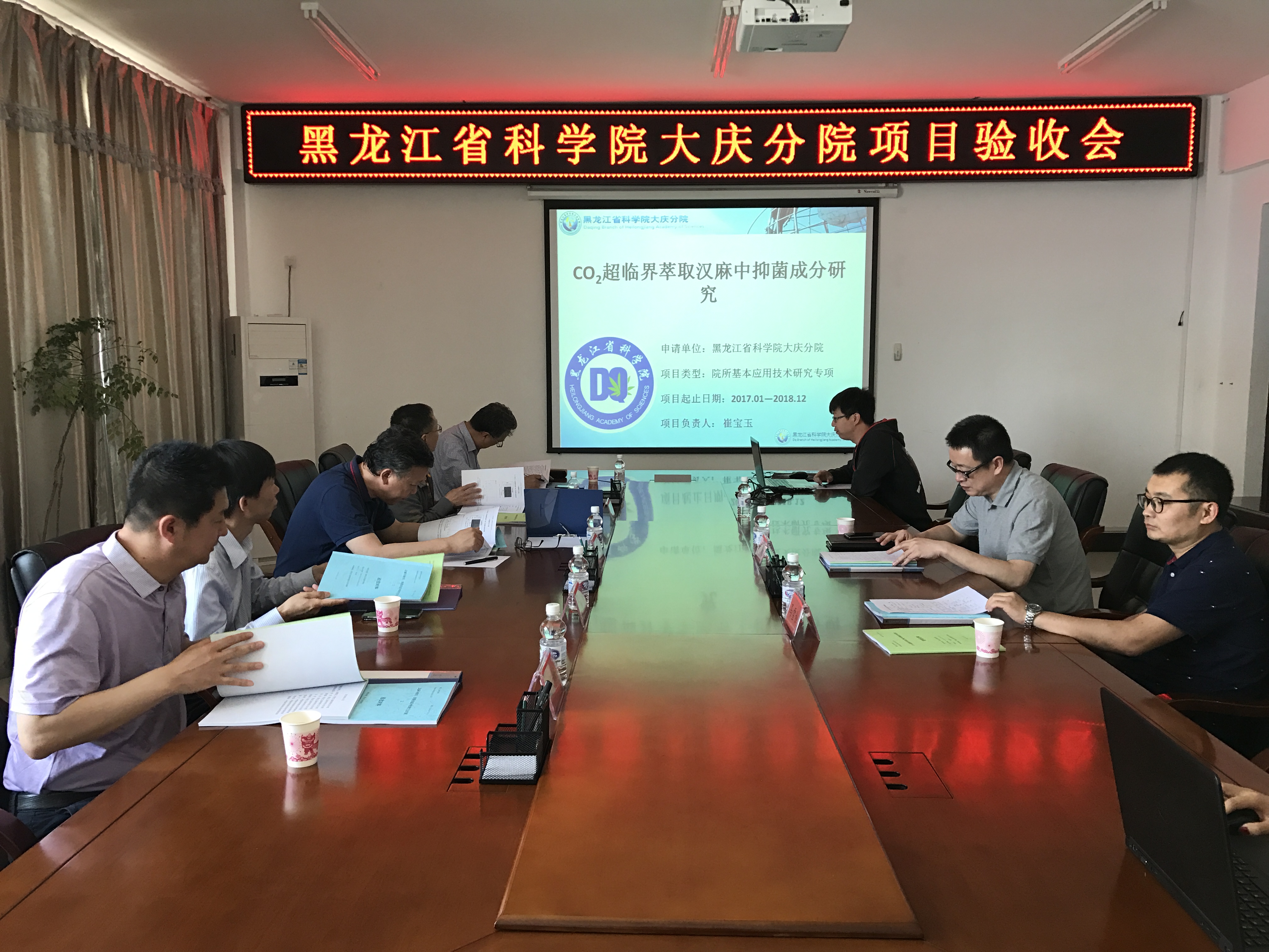 2019年5月24日下午,黑龍江省科學院組織專(zhuan) 家在大慶召開了由大慶分院承擔的省院所基本應用技術研究專(zhuan) 項“CO2超臨(lin) 界萃取漢麻中抑菌成分研究”和青年基金麵上項目“漢麻中酚類、黃酮類成分檢測方法的建立”驗收會(hui) 。驗收會(hui) 邀請了哈爾濱工程大學劉文彬教授、哈爾濱理工大學周浩然教授、大慶應用技術研究院張洪升研究員、省化工研究院任偉(wei) 東(dong) 研究員、東(dong) 北石油大學胡雲(yun) 峰教授組成了驗收委員會(hui) 專(zhuan) 家組,省科學院科研處馬雪鬆主持項目驗收會(hui) 。