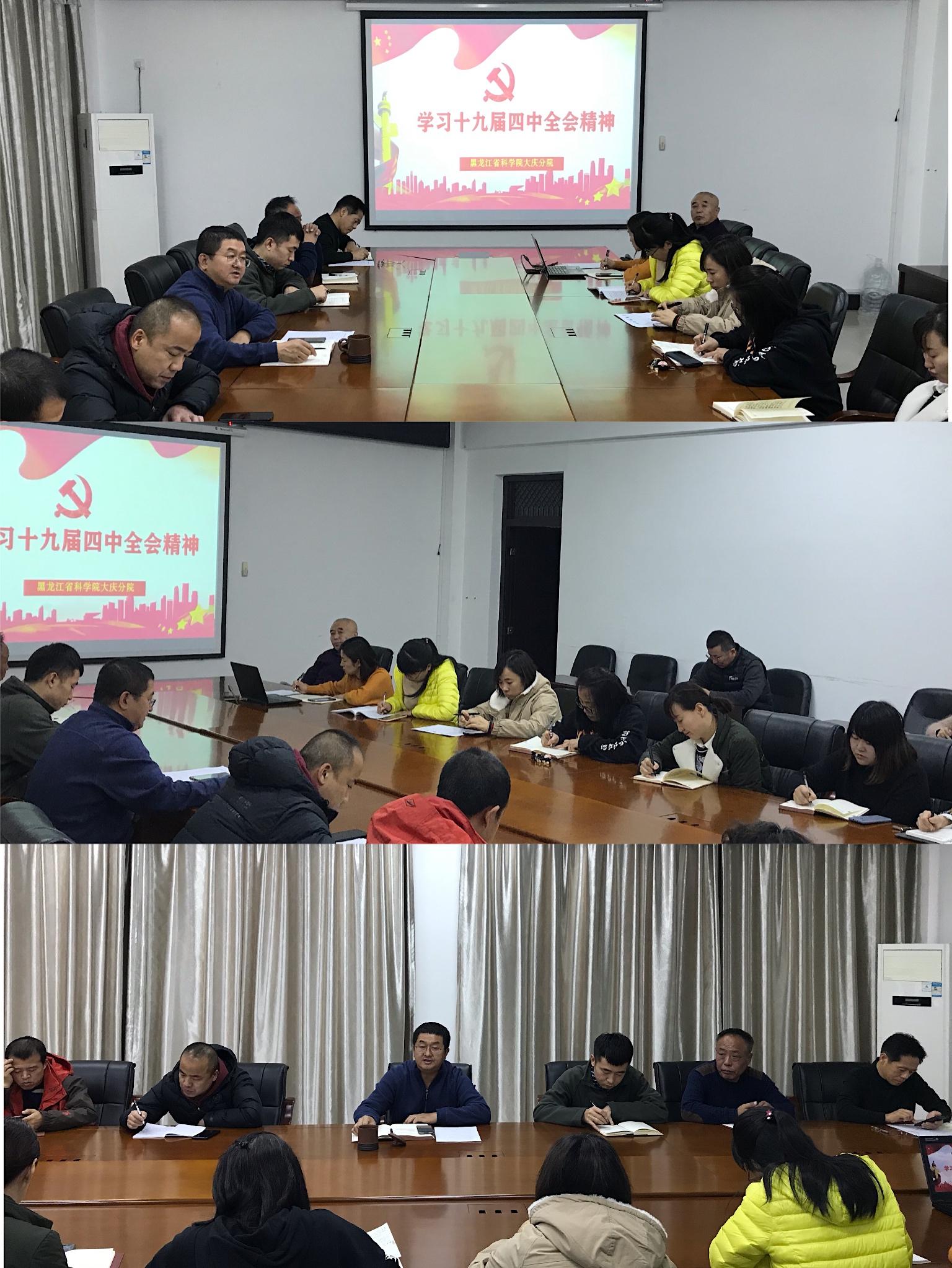大慶分院黨(dang) 委書(shu) 記、院長孫宇峰同誌對深入貫徹黨(dang) 的十九屆四中全會(hui) 精神提出要求,全體(ti) 黨(dang) 員幹部深刻領會(hui) 全會(hui) 精神的科學內(nei) 涵和精神實質,進一步認清製度優(you) 勢、堅定製度自信,增強政治認同、思想認同、情感認同,爭(zheng) 做學習(xi) 全會(hui) 精神、宣傳(chuan) 全會(hui) 精神的示範者,各支部要組織形式多樣的學習(xi) 活動,深入學習(xi) 精神有助於(yu) 科研業(ye) 務工作的開展。大慶分院全體(ti) 黨(dang) 員及中層幹部參加會(hui) 議。
